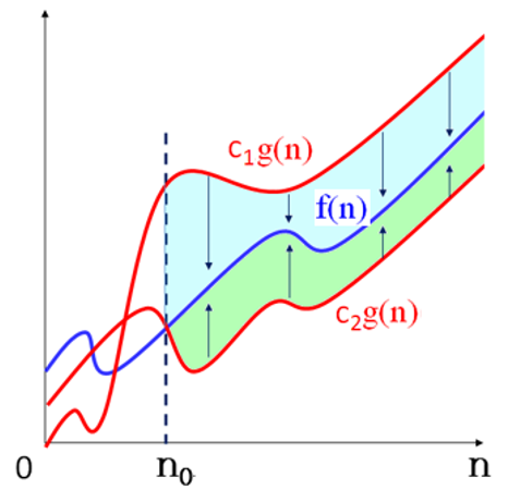 n0보다 큰 모든 n에 대해서 f(n)은 g(n)의 하한과 상한을 동시에 만족한다.